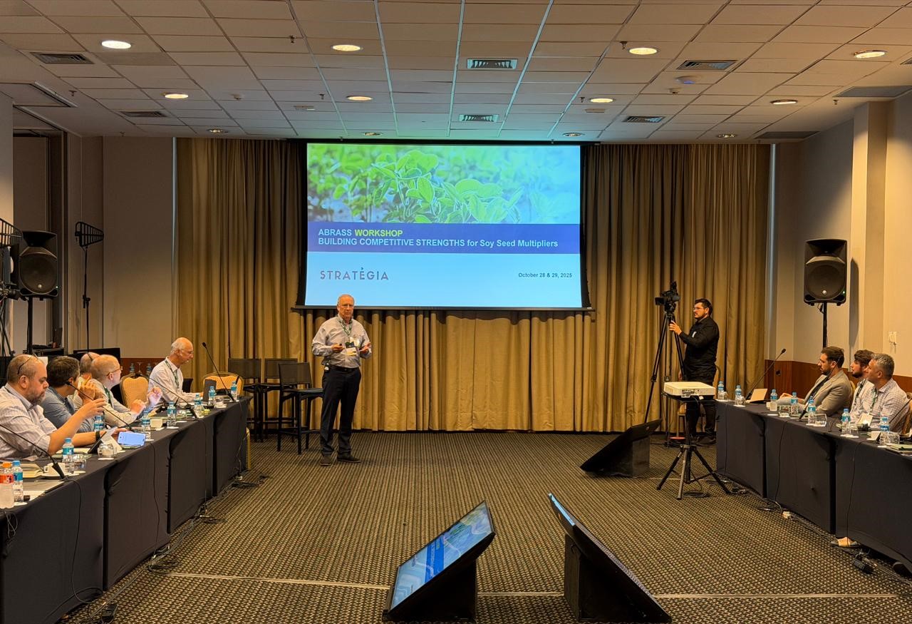 Nos dias 28 e 29 de outubro, os associados da Associação Brasileira dos Produtores de Sementes de Soja (ABRASS) estiveram reunidos, em Brasília (DF), com os especialistas internacionais Jim Eckles – consultor de estratégia e M&A no setor de sementes, Virgil Sparkes – pesquisador em sementes e proteção de cultivos, Craig Williams – atual deputado estadual de Iowa (EUA) e décadas de consultoria agrícola, Scott Hart – especialista na indústria de sementes em Iowa (EUA), que intermediados pelo Senior Carlos Ortiz, trataram sobre o relevante tema - Gestão Estratégica de Marketing e Posicionamento no Setor de Sementes de Soja.